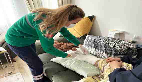 Bakıma muhtaç vatandaşlara evlerinde kişisel bakımlarını yapan belediye ekipleri, pansuman ve enjeksiyon ihtiyacı olan hasta vatandaşların da yardımına koşuyor.