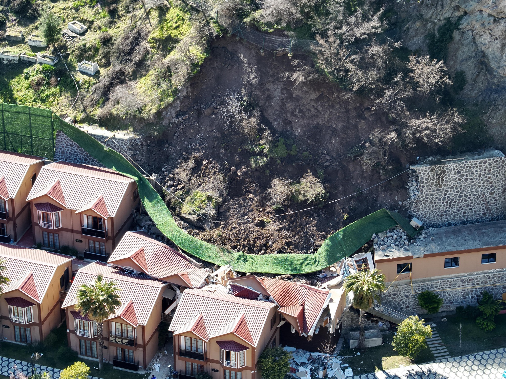Çayağzı Mahallesi Kaledibi mevkiisinde bağımsız bölümlerden oluşan turistik tesisin arka kısmındaki alanda heyelan meydana geldi. Heyelan sırasında yıkılan istinat duvarı, iki yapıda hasara yol açtı.
