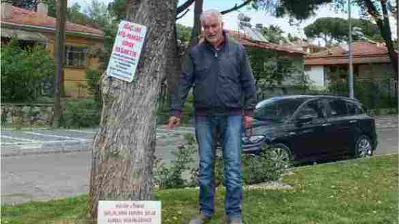 Balıkesir’in Burhaniye ilçesinde, kuruyan sedir ağacının gövdesindeki levha, bölge sakinlerini gülümsetiyor. Ağacın dibindeki tabelada, “Kültür ve Tabiat Varlıklarını Korunma Bölge Kurulu Müdürlüğünce koruması İstenen tescilli ağaç” yazılı olması dikkat çekiyor.