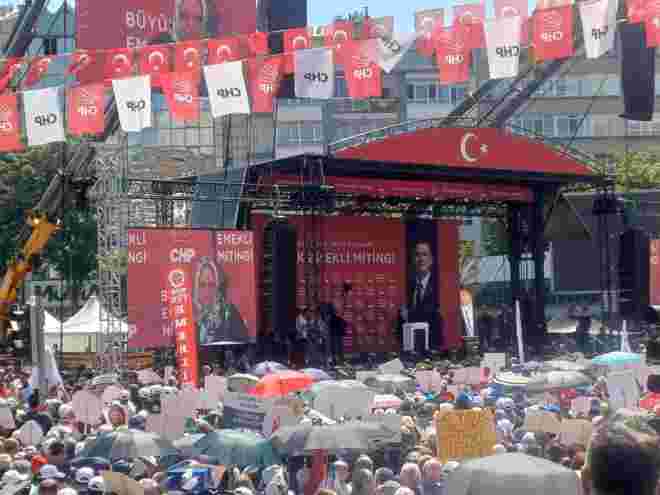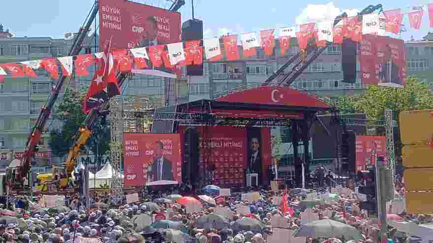 Tandoğan Meydanında "Büyük Emekli Mitingi"nde konuşan CHP Genel Başkanı Özgür Özel, mitingde yaptığı konuşmada, mitinge katılanlara ne kadar maaş aldıklarını sordu. "10 bin lira" cevabını alan Özel, "bunun dünyanın en büyük korosunun söylediği en acıklı şarkı" olduğunu belirtti.