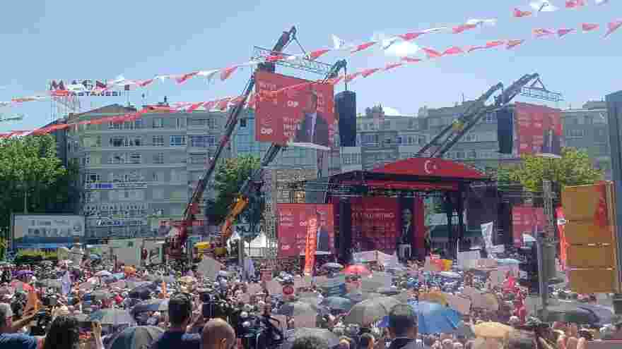 Son olarak sahneye çıkarak miting meydanını dolduranları selamlayarak konuşmasına başladı.