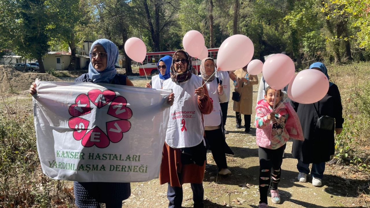 Sabahın serinliğinde başlayan yürüyüşte, KANSEV üyeleri ve gönüllüler belirlenen parkur boyunca adımlarını umutla attılar. Yanlarında getirdikleri pembe balonları, ormanın derinliklerine bırakan katılımcılar, “Hastalığımızı burada bırakıyoruz” mesajıyla hem duygusal hem de güçlü bir farkındalık oluşturdu. O anlar, doğanın sessizliğinde güzel bir görüntü oluşturdu.