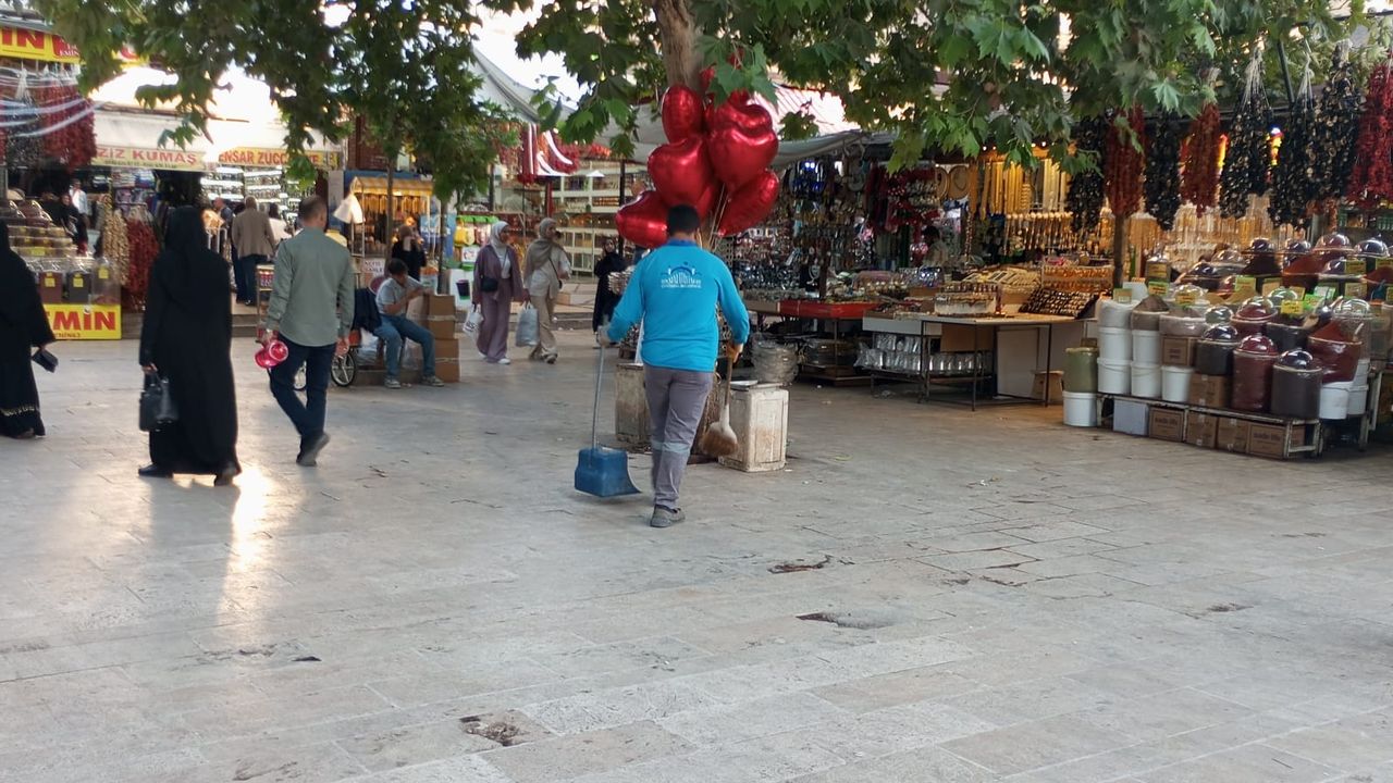 İlçenin en kenardaki mahallesinden, her gün binlerce yerli ve yabancı turistin akın ettiği Balıklıgöl, tarihi çarşılar ve hanlar bölgesine kadar tüm cadde ve sokakları süpürüp, yıkayarak pırıl pırıl hale getiren çalışanlar, gün boyunca da aynı yerlerde görev almaya devam ediyor.