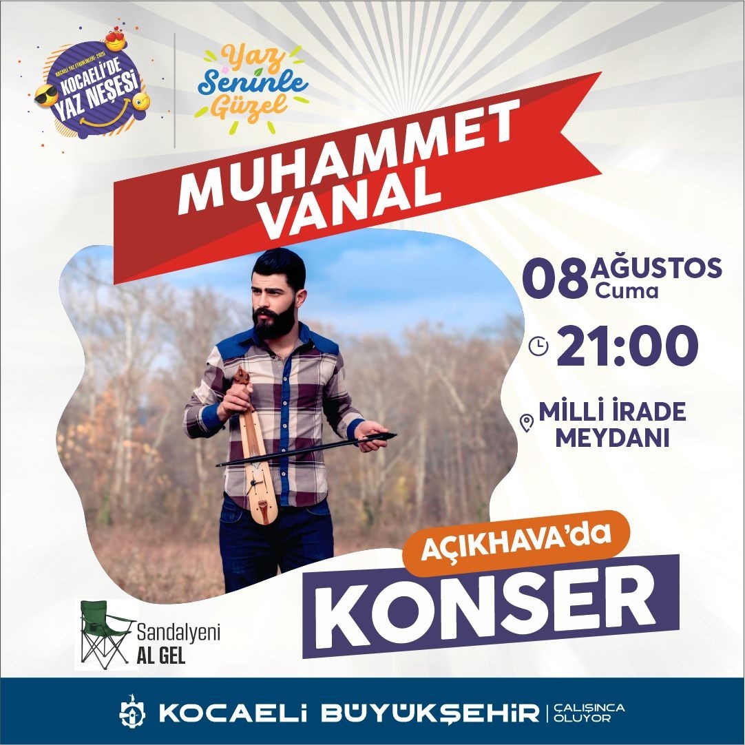 Kocaeli Büyükşehir Belediyesi’nin hizmete sunduğu İzmit Milli İrade Meydanı, sosyal yaşamın yeni merkezi haline geldi. İzmit’in kalbinde bu kez açık hava konserleri düzenlenecek. Her hafta farklı sanatçıların sahne alacağı konserlerde vatandaşlar, açık havada tamamen ücretsiz müzik keyfi yaşayacak. Etkinliklerin ilk konuğu ise Karadeniz ezgilerinin sevilen ismi Muhammet Vanal olacak. 8 Ağustos Cuma günü (yarın) saat 21.00’de Muhammet Vanal’ın kemençesiyle başlayacak konserde izleyiciler coşkulu dakikalar yaşayacak.