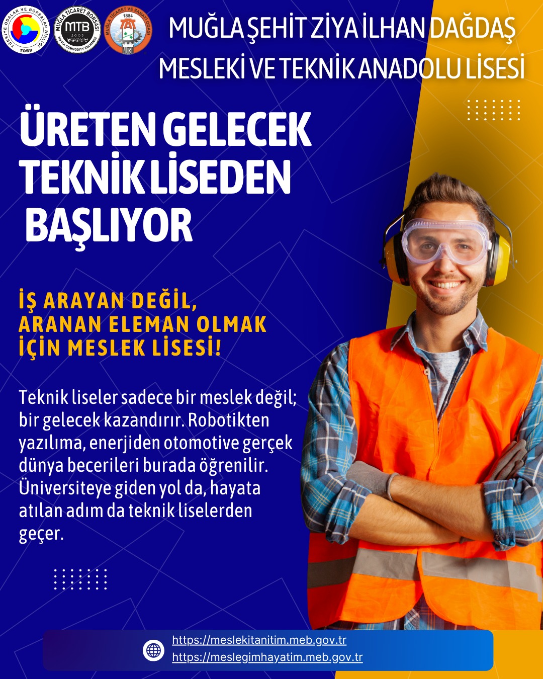 Muğla Şehit Ziya İlhan Dağdaş MTAL gibi proje okulları, öğrencilerini yalnızca meslek sahibi yapmakla kalmıyor; özgüven, sorumluluk, girişimcilik ve üretkenlik gibi değerlerle donatarak çok yönlü bireyler olarak yetiştiriyor. MUTSO ve MTB, tüm velilere “Çocuğunuzun lise bittiğinde mesleği, işi ve hayat planı hazır olsun istiyorsanız meslek liselerini değerlendirin” çağrısında bulunuyor.
