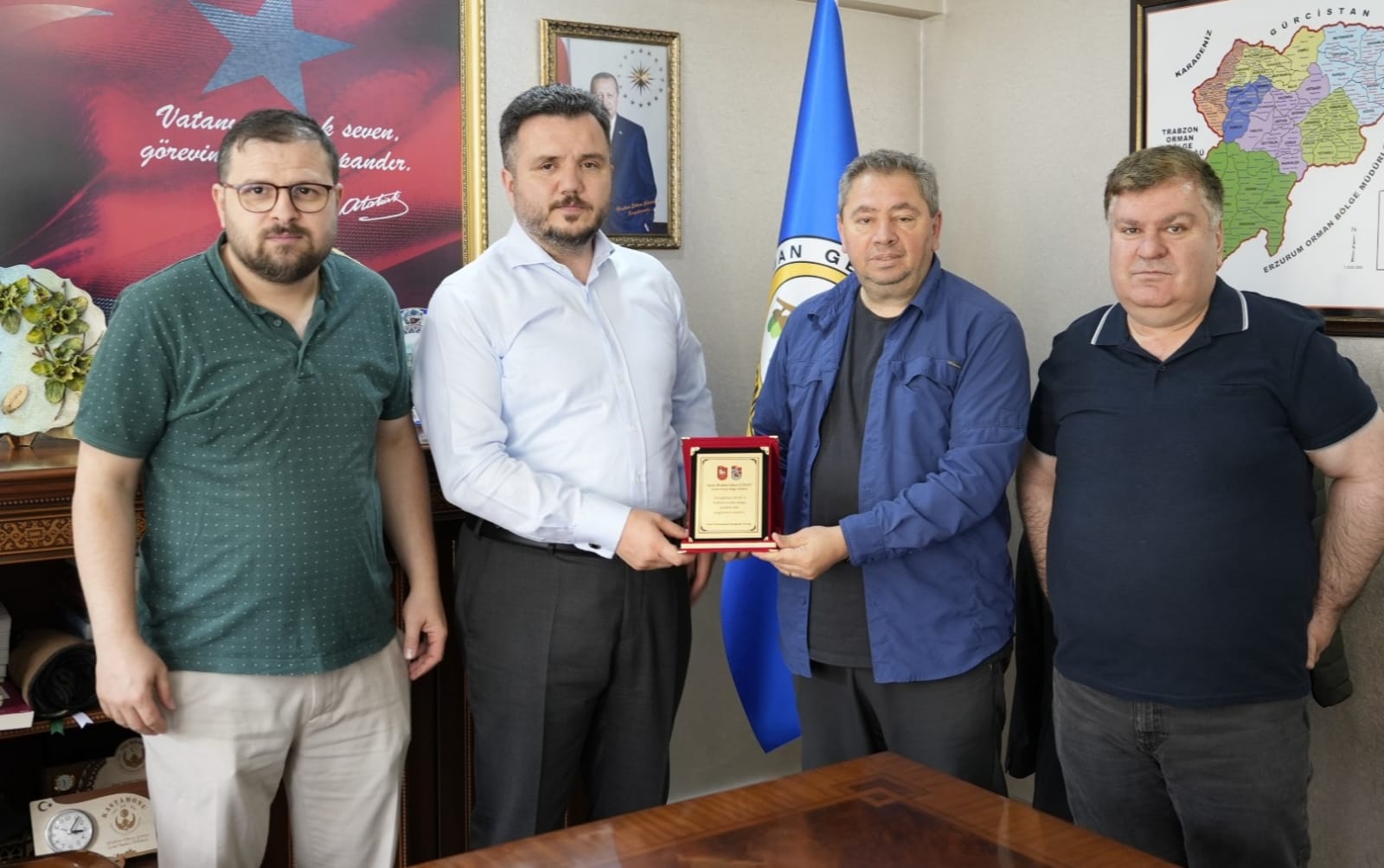 Artvin Trabzonspor Taraftarlar Dernek Başkanı Bayram Sarayoğlu ile yönetim kurulu üyeleri Alim Çelik ve Murathan Taşkın, Artvin Orman Bölge Müdürü İbrahim Ethem Gürsoy’u ziyaret etti.