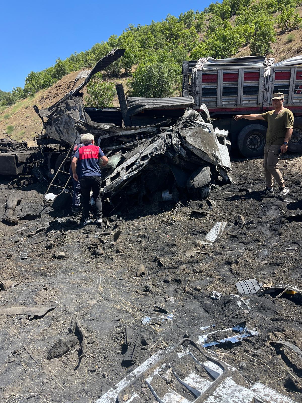 Sürücüsünün kimliği henüz öğrenilemeyen 31 TE 247 plakalı tır, Bingöl-Diyarbakır karayolunun Tapantepe mevkiinde kontrolden çıkarak devrildi. Kaza sonrası alev alan tırın içinde sıkışan sürücü feci şekilde can verdi.