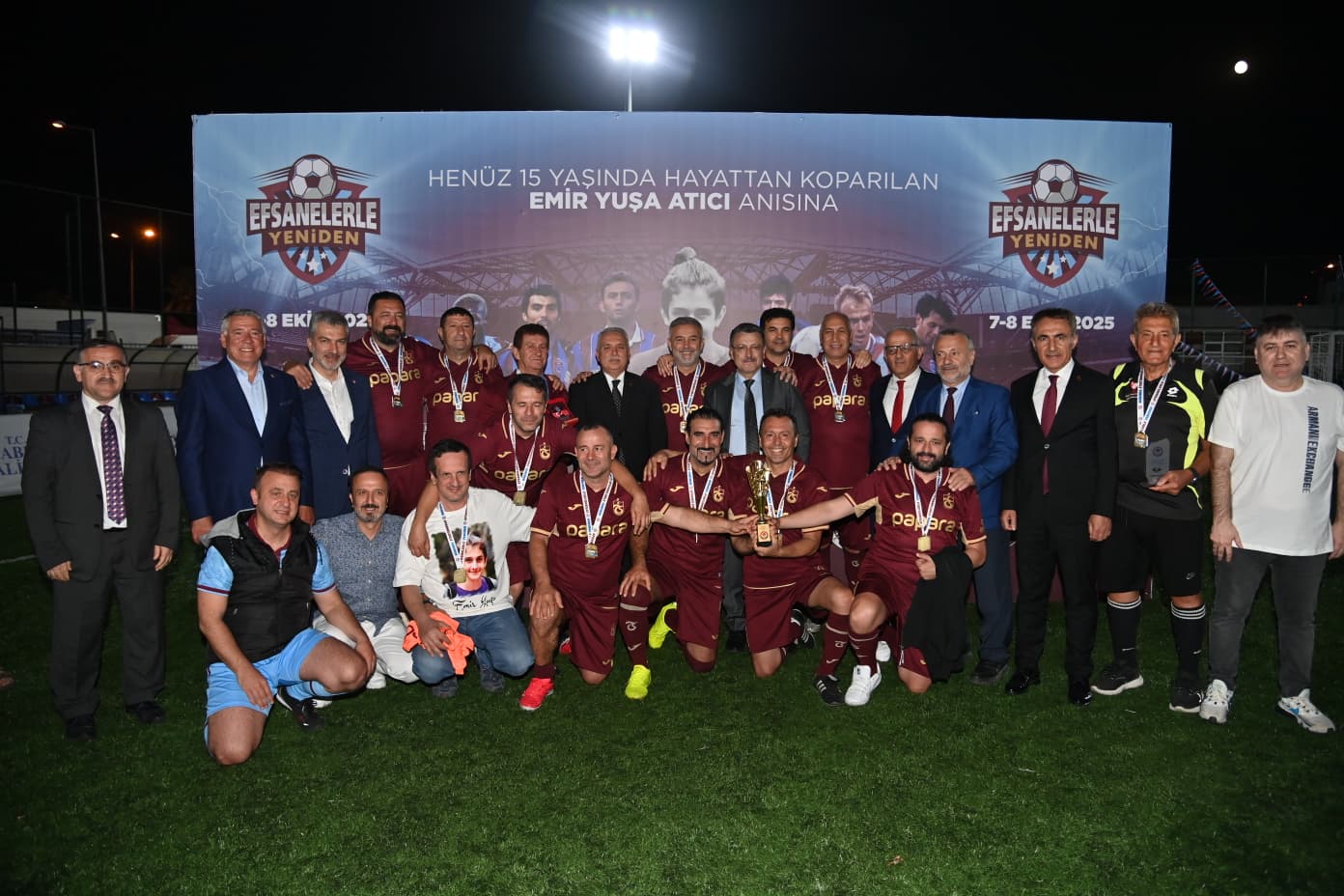 Trabzon Büyükşehir Belediyesi tarafından organize edilen “Efsanelerle Yeniden” futbol turnuvası, Emir Yuşa Atıcı anısına Faroz Futbol Sahası’nda düzenlenen final karşılaşmasıyla tamamlandı. Finalde Bordo Takım, penaltı atışları sonucunda 9-8’lik skorla şampiyonluğa ulaştı.