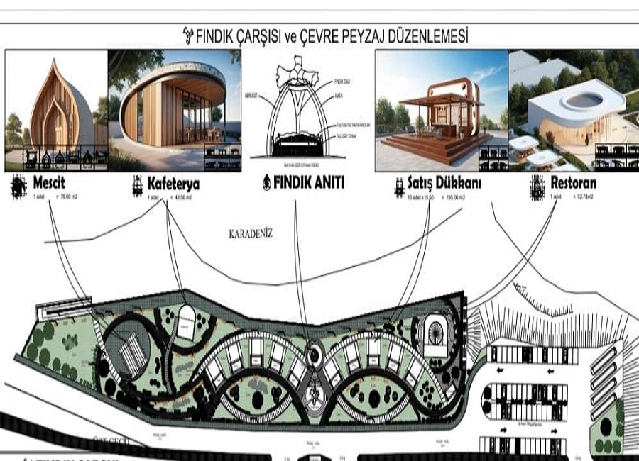 Yapmış olduğumuz çalışmalar sonucunda İlimiz Merkez İlçesi Erikliman Mahallesi Atatürk Bulvarı'nda mülkiyeti hazineye ait olan toplam 14.305,42 m² tahsis alanı üzerine yapımı planlanan FINDIK ÇARŞISI VE PEYZAJ DÜZENLEMESİ PROJESİ bünyesinde 1 Adet Restoran, 1 adet Kafeterya, 10 adet Satış Dükkânı, 1 adet Güvenlik ve Tuvalet ve 1 Adet Mescit yeterli sayıda araç otoparkı ile birlikte çevre peyzaj düzenlenmesi bulunan Fındık çarşısı ve peyzaj düzenlemesi projesini hazır hale getirdik. Çalışmalarımızı en kısa süre içerisinde tamamlayıp bakanlığımıza sunacağız ve projenin yapım işine başlayacağız.