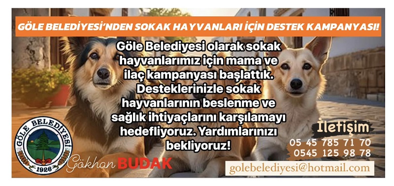 Göle Belediye Başkanı Gökhan Budak, ilçedeki sokak hayvanlarının mama ve sağlık giderlerinin karşılanması için başlattıkları kampanyada vatandaşlara çağrı da bulundu.