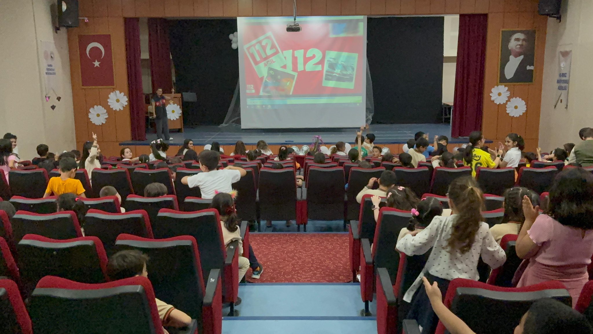 Etkinlikte, acil durumlarda nasıl davranılması gerektiği, 112’nin hangi durumlarda aranması gerektiği ve doğru iletişim kurmanın önemi uygulamalı örneklerle öğrencilere aktarıldı. Minik öğrenciler, görevli ekipler tarafından anlatılan bilgileri ilgiyle dinlerken, soru-cevap bölümüyle merak ettikleri konuları sorma fırsatı da buldu.