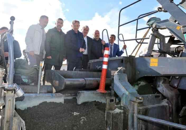Vali Ziya Polat, AK Parti Kars Milletvekili Adem Çalkın ile birlikte 2 Km. Silindirle Sıkıştırılmış Beton Yol (SSB) yöntemiyle yapılan Cumhuriyet Köyü yolunda incelemelerde bulunarak yetkililerden bilgi aldı.