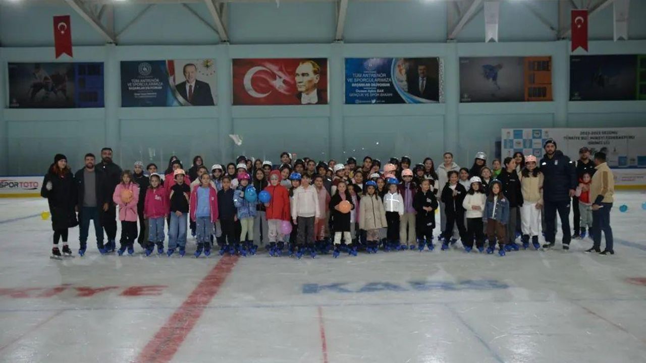 Etkinlikte, genç kız sporcular buz üzerinde sergiledikleri performanslarla büyük beğeni topladı.